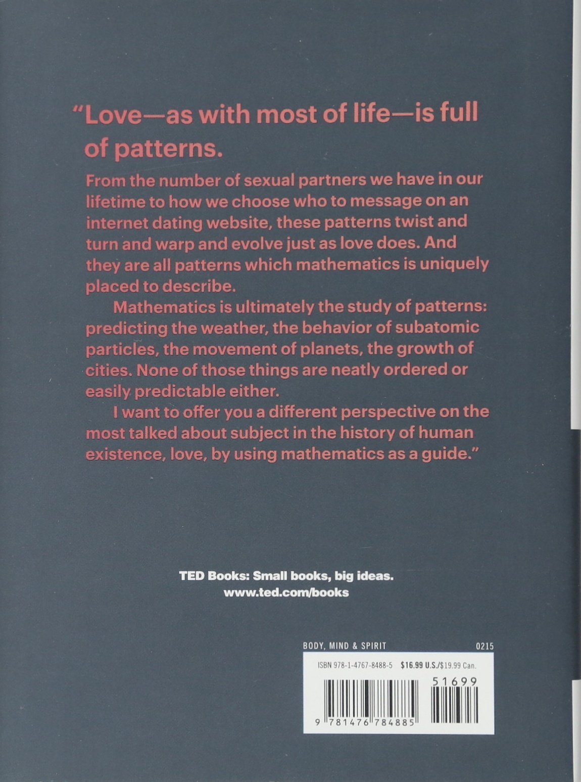 In this must-have for anyone who wants to better understand their love life, mathematician Hannah Fry pulls back the curtain and reveals the hidden patterns—from dating sites to divorce, sex to marriage—behind the rituals of love.